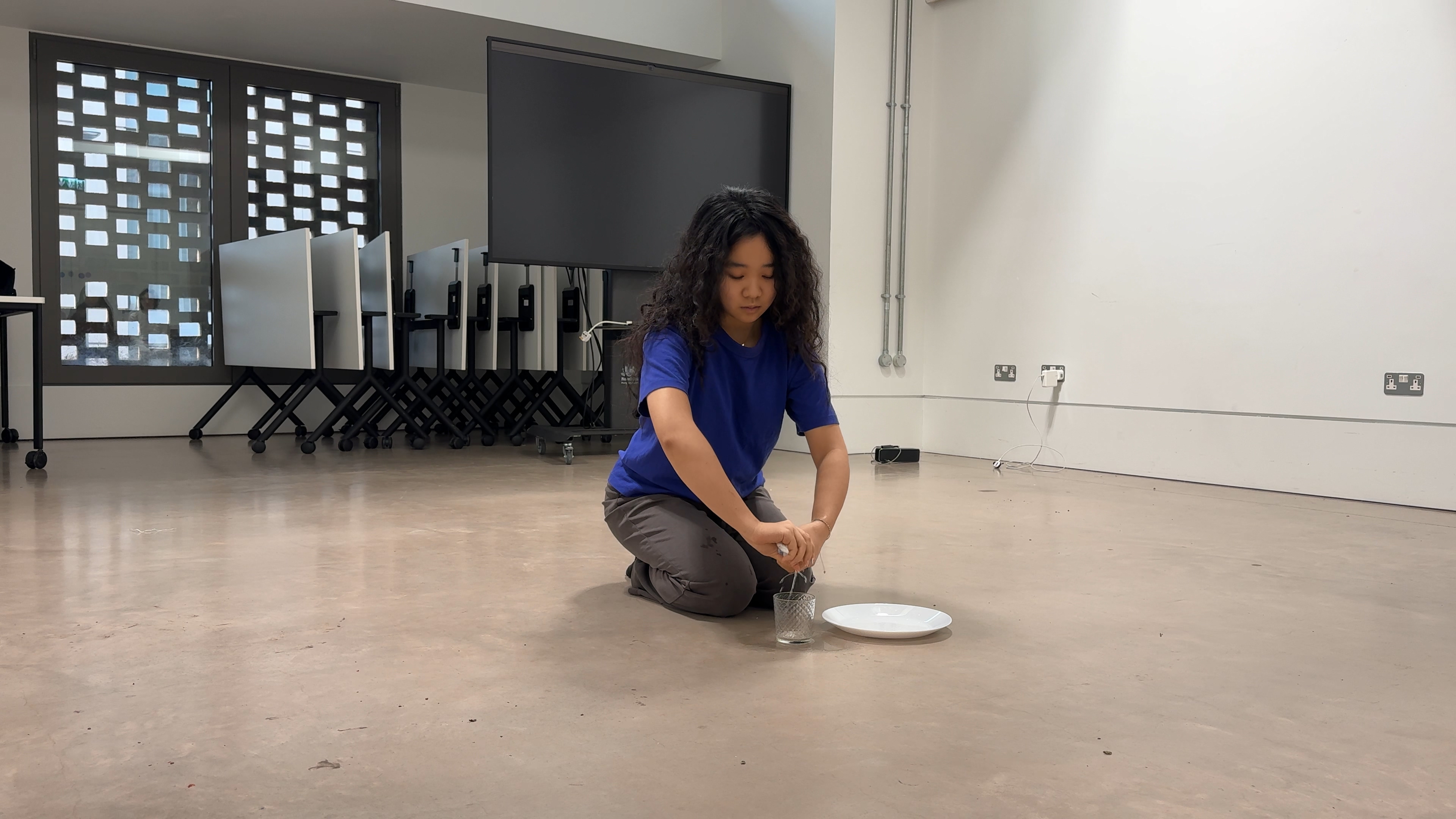 I knelt on the ground, wrung the water from a soaked cloth into the glass in front of me, picked up the glass, held the water in my mouth, and attempted to speak, Then I spat the water back into the glass, absorbed it again with the cloth, and wrung the water back into the glass. I repeated this process for five minutes until the water in the glass was completely depleted.